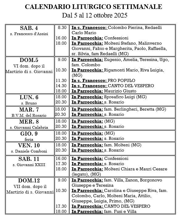 Questa settimana il Parroco…