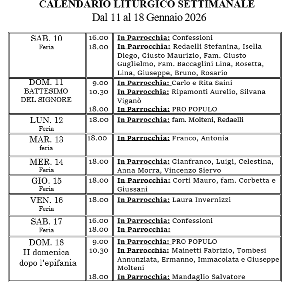 Bollettino anno pastorale 2024/2025 a partire dalla Domenica di Cristo re