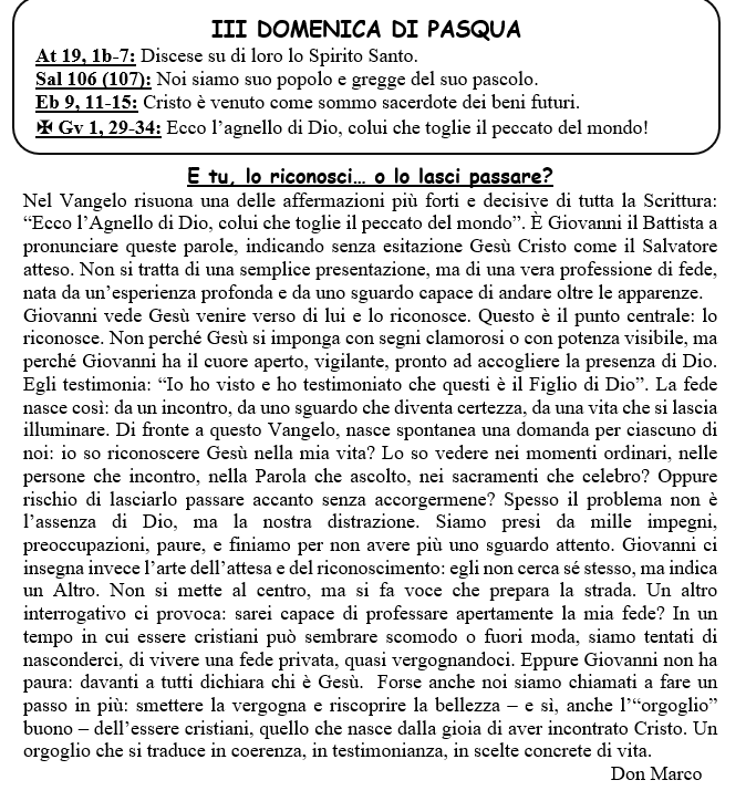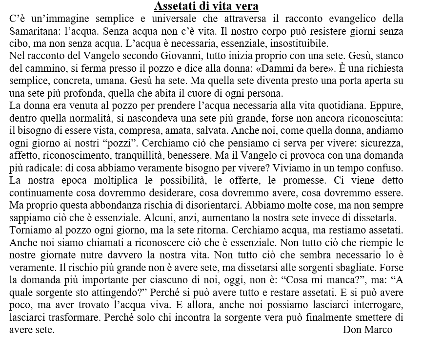 Questa settimana il Parroco…